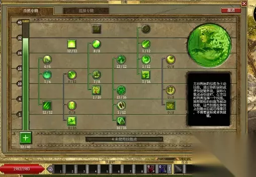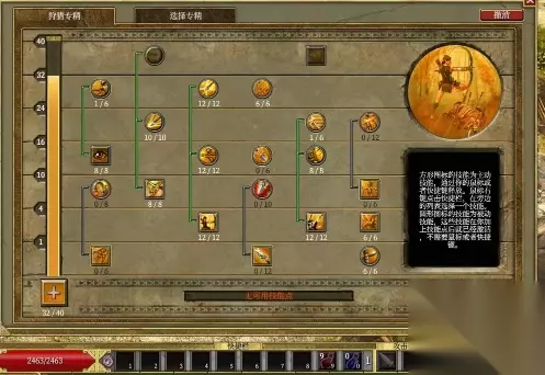 2、全力投入到狩猎专精的堆砌中,基本上专精与技能点对点提升。首先加满木学知识,防御大增,安全无忧,攻速也直线上升。射术本体和齐射技能加满,点数伤害前期优于百分比,齐射更是单体群攻两相宜,堪称最强被动技能。