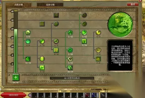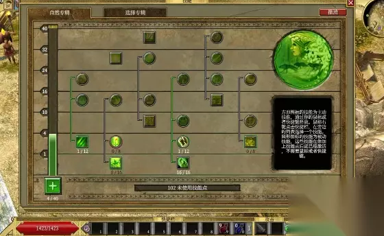 6、最后,核心技能已全部加完,如果有全技能+4,现在大概73-75级;若有全技能+5左右,可以进一步补充狩猎专精条、自然专精条,加1级大地束缚控场,或加满瘟疫双降抗,具体看个人喜好。若想用矛刷BOSS,可设置左键瘟疫右键猫眼,手机版操作更顺畅。