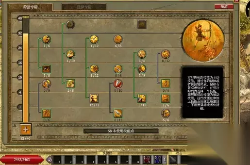 4、狩猎专精的系列技能我几乎全部加满,除了猫眼的进阶对弓箭作用有限,狩猎艺术提升移动速度的进阶也不太实用,留1点最为划算。值得一提的是,打小九之前,草本知识必须点满。