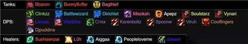 没有更换职业全通的团队中WCL的记录一共有3个,我们这里先看一下OldSchool的阵容: