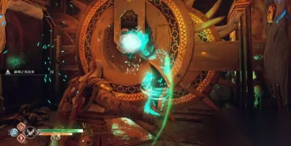 7、复仇女神狂冲 地点:女巫洞穴(获得链刃后) 获取方法:我们来到女巫洞穴,先把右边赫尔之风门上的能量,带到女巫家门口的石球上。