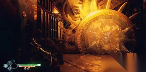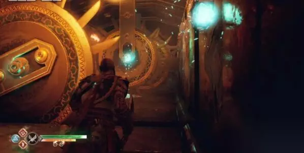 接着我们操控沙盘将平台下降,到底后打开左边的门,通过旋转陷阱,房间内赫尔之风能量打开的门,先用门上的石球把能量转移到一旁旋转陷阱上,再把能量转移到一旁墙的石球上,让陷阱开始公转。