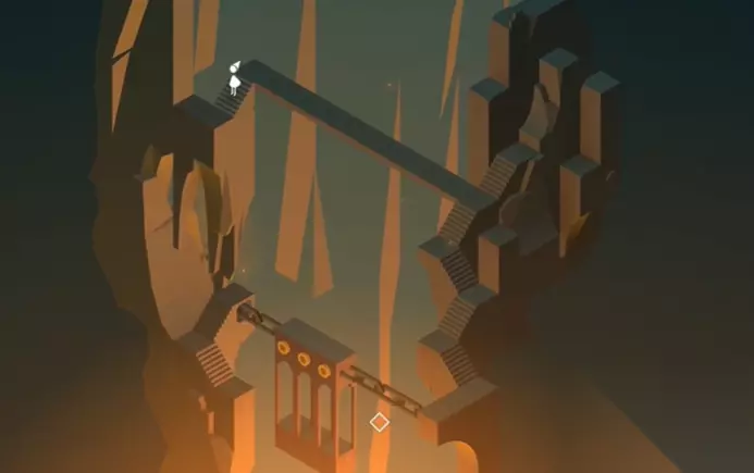 纪念碑谷1附录一攻略 附录一深坑 1、沿着楼梯向下走,会触发机关,掉至下方的独木桥处。