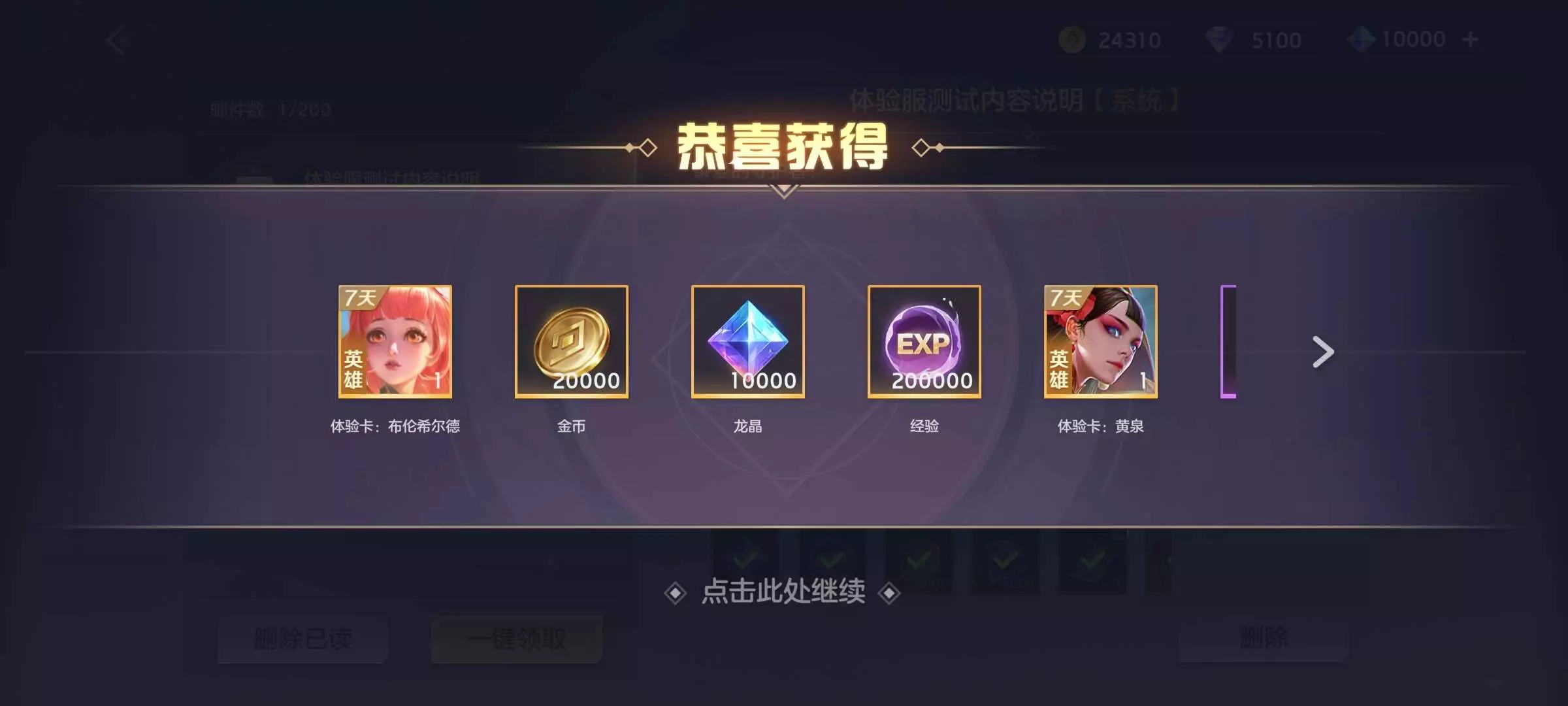 这体验服有点东西哦,1万个龙金都快花不完了,就是登录时间有一点长,而且里面的排位超级难打,全是真人和高手