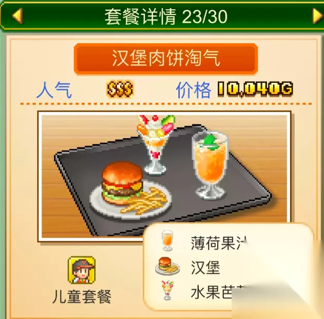 提升人气再就是关注员工分工,咖啡大师技能的店员放吧台,制作评分+15%。快速烹饪技能的负责后厨,出餐速度提升30%。设备先升级磨豆机,没升级的话,出餐速度就慢很多。套餐组合是人气关键,如汉堡肉饼淘气=薄荷果汁+汉堡+水果芭菲,组成儿童套餐,比单品总价高25%,顾客还觉得划算。记得每天检查食材库存,批量采购咖啡豆能省10%成本。这样就能把节省出来的钱用在装饰等等满意度硬指标上,来直接拉搞你的小店人气。
