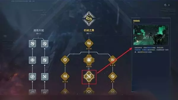 在天赋方面,优先选择与射手步枪适应的机械之舞,并优先点出死神时刻(射击反馈)和右侧的武器之歌(增伤)。
