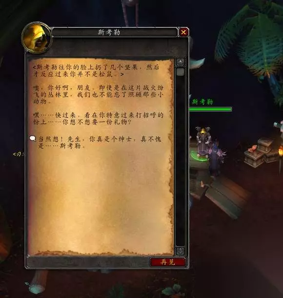 玩具: 1、【斯考勒的坚果袋】-坐标55 75 ,NPC斯考勒对话即可获得。