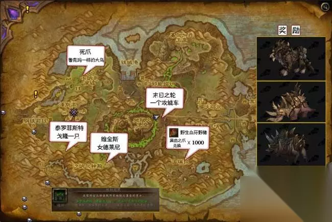 在副本外的地图上,还有三只坐骑,四个稀有精英共享掉落,每个稀有一天只有一次拾取。 (也就是说你运气好,可以再同一个稀有拾取到两只不同的坐骑)