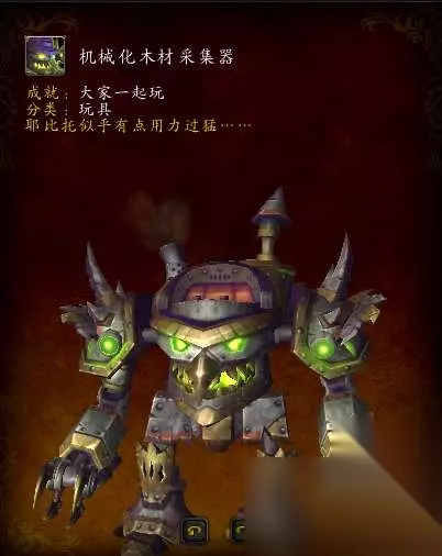 在说玩具之前,大家是否知道,当收集300个玩具之后,会奖励一只机械坐骑哦! 【机械化木材采集器】