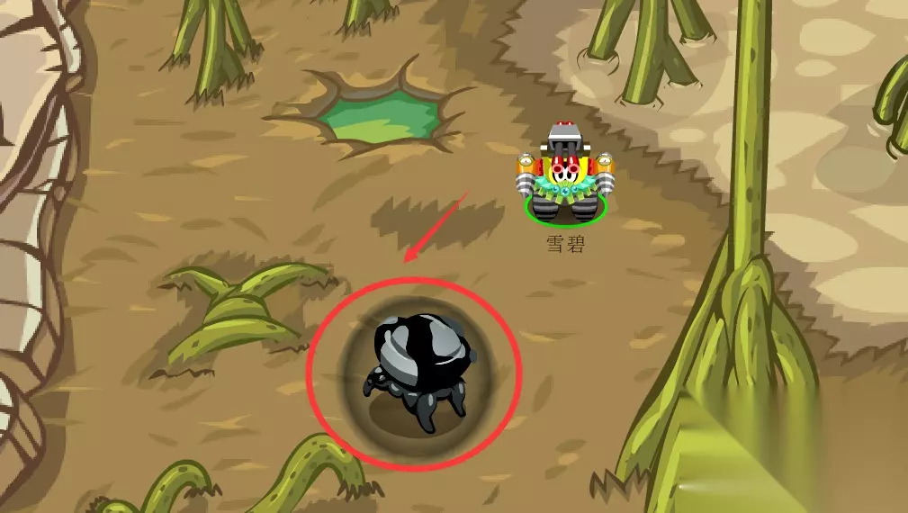 装备上喷水装置,射击时就可以喷出水柱了。 来到火星的第二个地图,上方有许多石头似乎堵住了什么,多点几下把石头点开,就可以去火星的山洞深处了,大盗就困在这里。