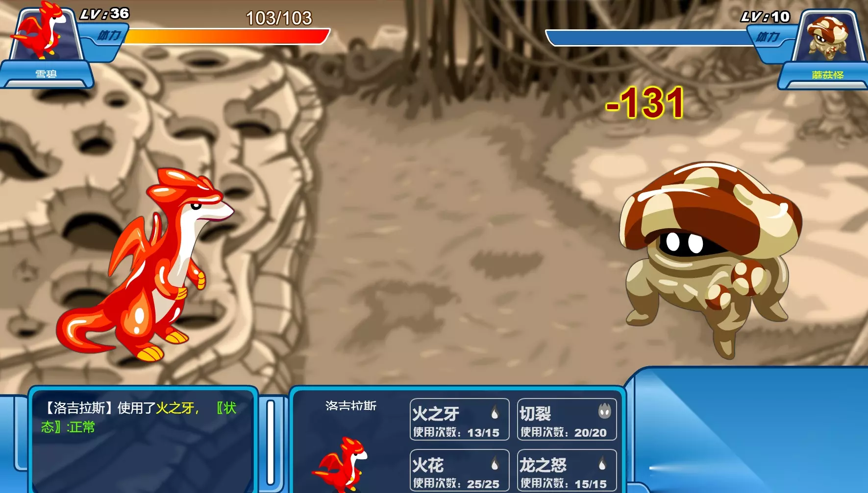 通过“瞄准”射火焰弹大蘑菇怪,快速地多打几下,打掉保护膜后点击它便可和它战斗了。