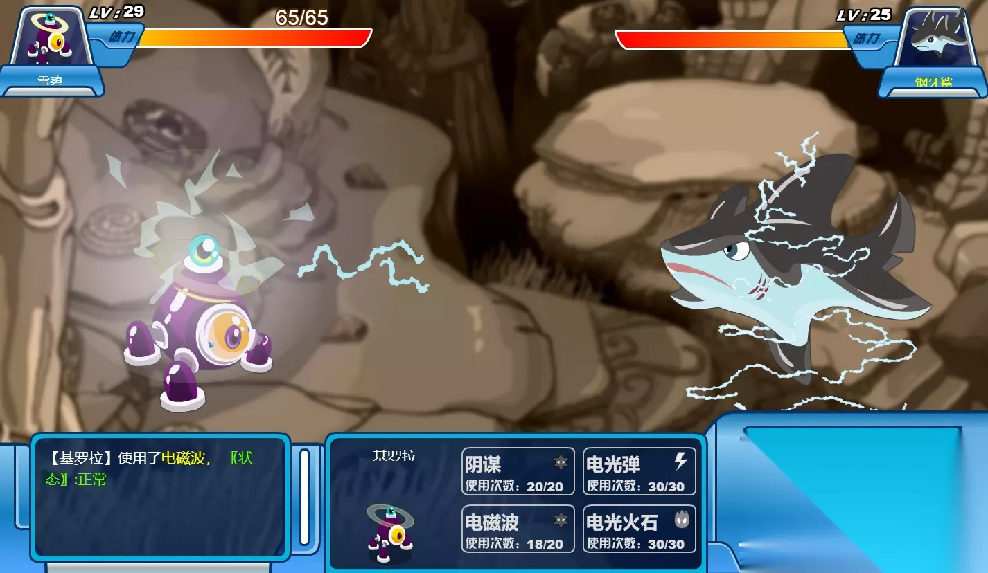 装备上(只穿潜水的三件套)以后通过地图来到海洋星浅水区——海洋星深水区——海洋星海底。远处有个洞,一只鲨鱼虎视眈眈…………更可怕(⊙o⊙)!点击后开始战斗。