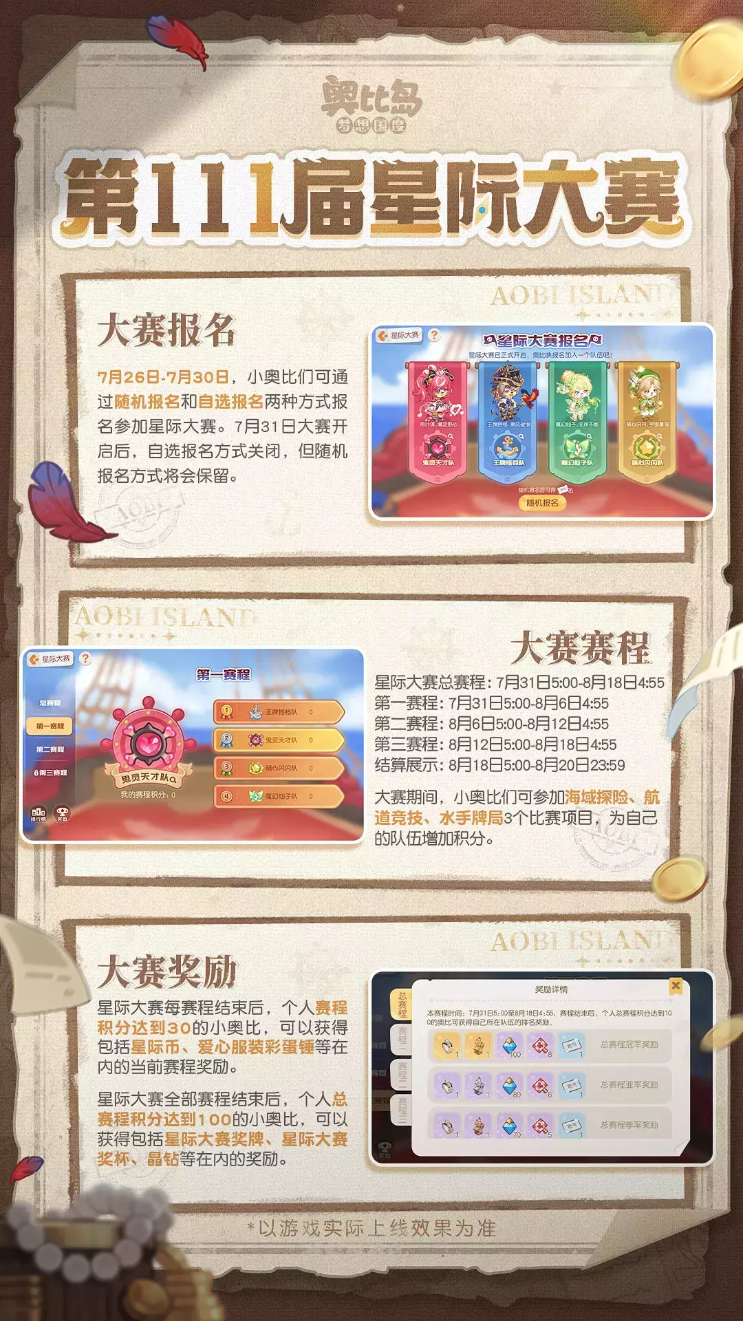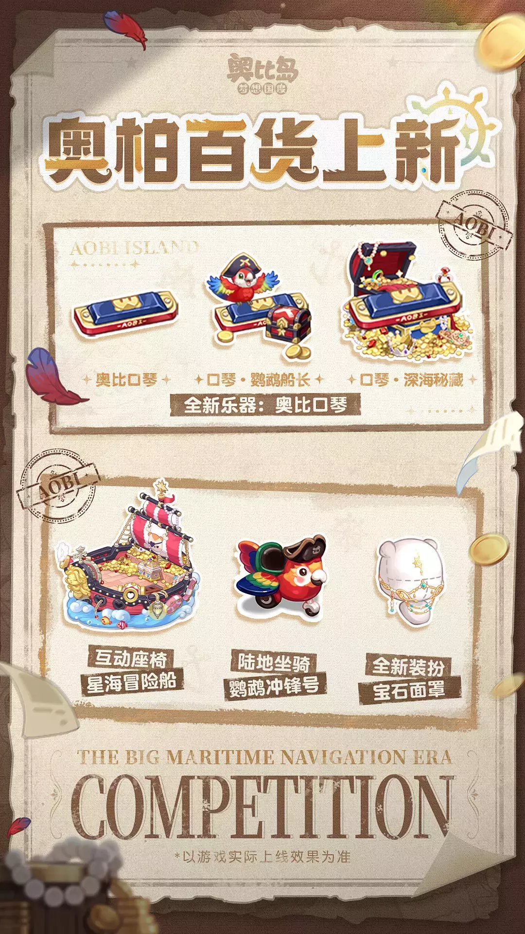 🧭奥比岛第111届「星际大赛」航海季限时活动将于7月31日正式开启!航海主题装扮&家具上新,奥比生活新系列登场,还有限时宠物「熊克船长」、星际大赛全新项目等精彩内容即将和大家见面!