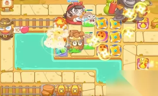 3、右边放置吐火瓶,遮阳帽小兔子就锁住进攻。