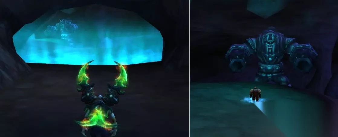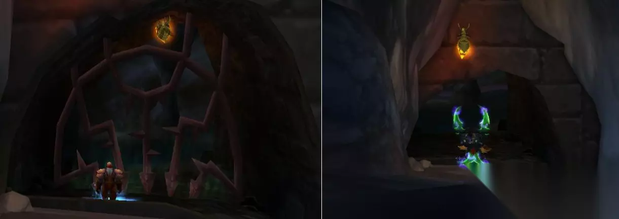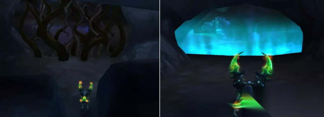 穿过邪能墙,马上会看到一个石像鬼,停止前进。 吃下诺格佛格药剂, 一直吃到你变成骷髅, 然后顺利从他身边走过去,否则你会被传送到地洞口。(可提前吃,10分钟持续时间)