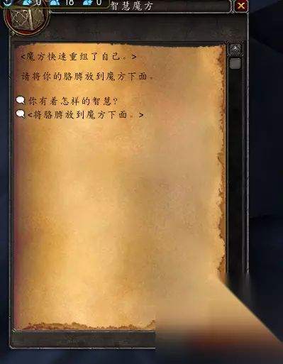获得第二BUFF后,回到刚才【铁栏门】门口,使用10个【亚口鱼油】把自己缩小,穿过去。 进入之后发现有个“智慧方块”,进行四次对话。