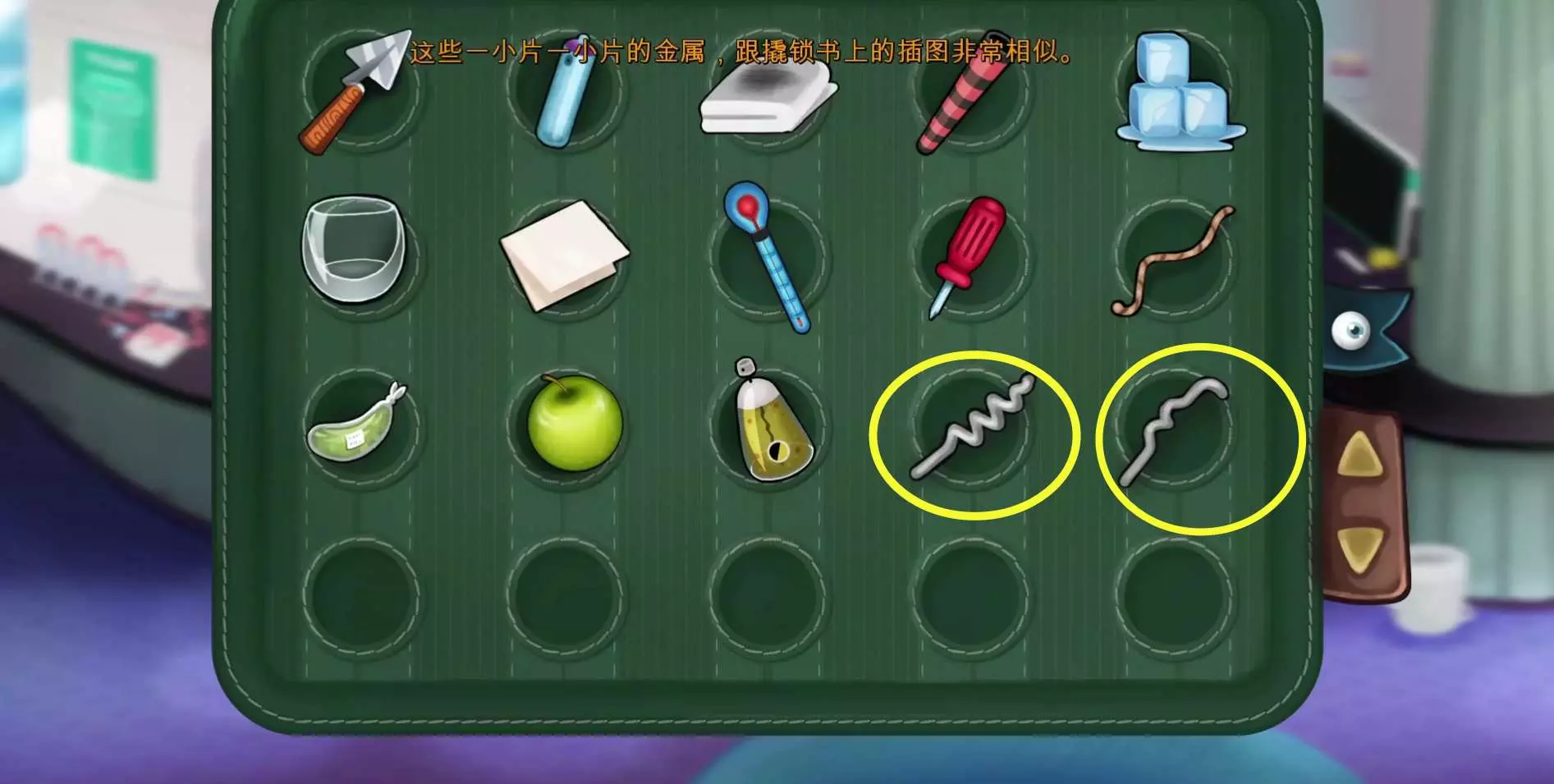 60.离开房间,用【撬锁工具】打开走廊的保密柜,获得【求生包】。(先用上面的铁丝卡住锁孔顶部,然后用下面的铁丝撬锁)60.1