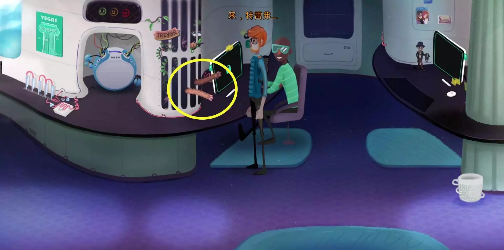 56.乘坐电梯上2楼,返回实验室,把【刺身】给特雷弗。(麦克罗左边的笼子)56.1