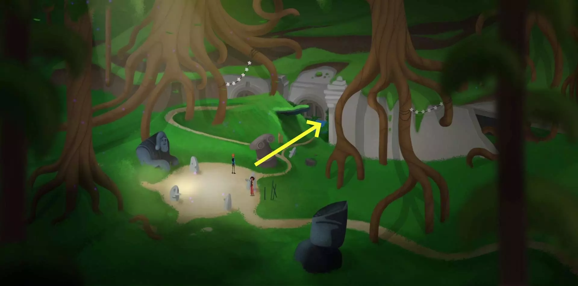 95.拾取插在树上的【小刀】和石柱上的【柠檬】。95.1