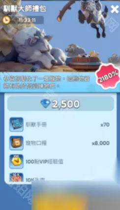 触发条件: 玩家成功开启一个新的橙色英雄。 购买建议: 对于车头玩家来说,此礼包提供了传说通用碎片,性价比尚可。 五、宠物礼包