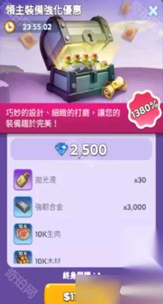 触发条件: 玩家获得新宠物。 购买建议: 宠物礼包可根据需求购买,前期内容一般,但萌宠自选礼包较为优秀。 六、领主装备强化礼包