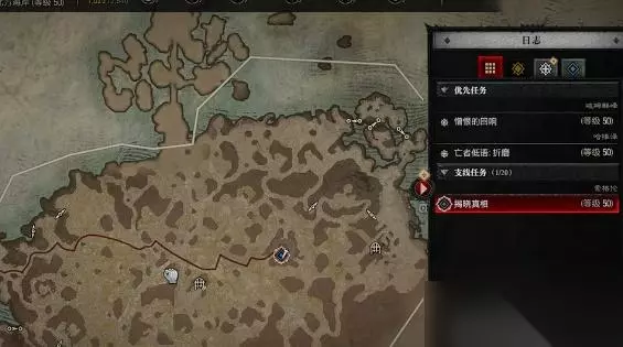 暗黑4揭晓真相任务攻略 1、首先玩家是需要在游戏中是先打开地图,在地图上面是需要找到这个位置,需要沿着这根线往前走。