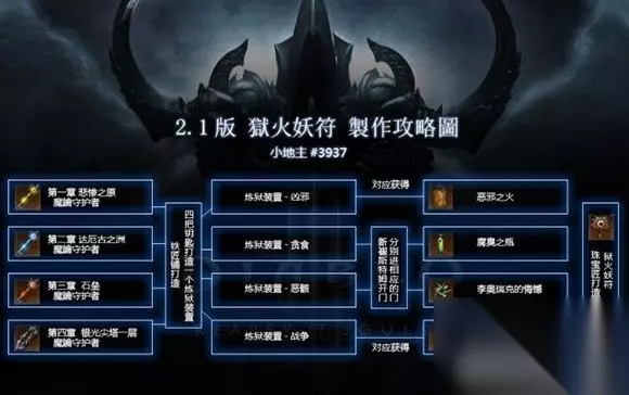 如何获得狱火护符 制作狱火护符的过程与制作狱火妖戒完全一样,唯一不同的则是在珠宝匠处买不同的配方。这里我们就为大家简短的叙述一样制作过程: 玩家们从魔钥守卫者那里获得钥匙。 在铁匠处把这些钥匙用配方合成炼狱装置。 打开炼狱装置的传送门与4位BOSS战斗。 每个传送门都有几率获得玩家必须收集的恶魔器官。 这些材料可以到珠宝匠处合成狱火妖戒或狱火护符。 珠宝匠要学习的配方必须从第二章的小女孩NPC处以500万金币购买。 总体流程 就是 打4把钥匙,然后合成炼狱装置,然后开门杀怪得零件,最后合成! 一、如何获得4钥匙,看下图