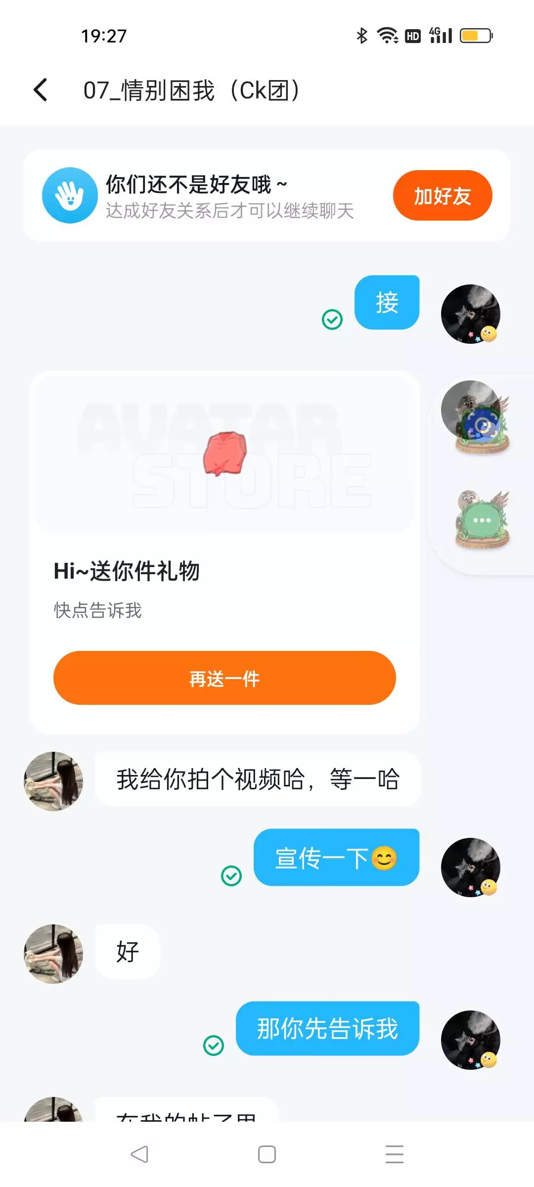 这个人我送他了,然后他就删我,然后他就。我觉得烦,然后他就让我删他,帮我举报他一下