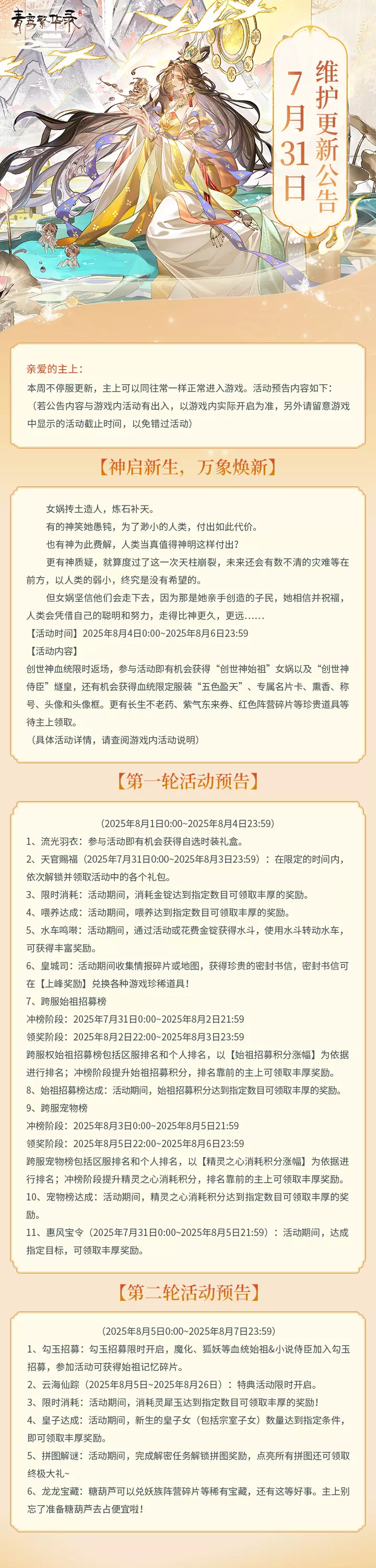 7月31日更新公告