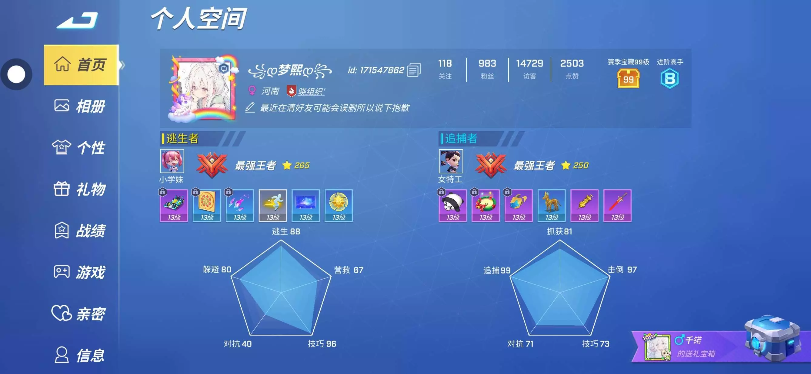 有人会莫名其妙送我礼物吗😋或者带我上分(带我上分的请留下言谢谢)