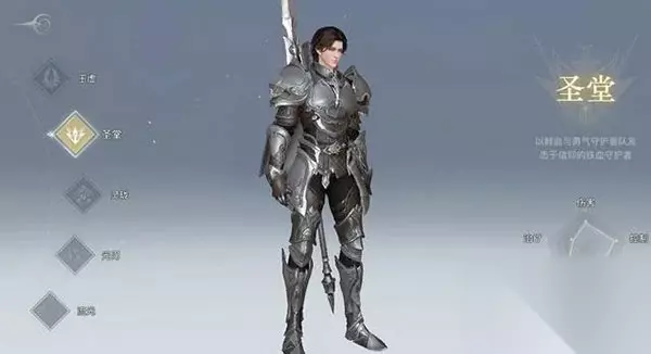 二、圣堂 使用武器:重器、盾 职业优势:圣堂的职业定位是肉盾,其生存能力不用质疑,在一个团队中拥有不可或缺的地位。而一个团队的地位也由着主抗的实力来体现,比起高超的操作,圣堂这个职业还需要扮演者在属性和实力上投入巨大的精力与心思,才能担起领袖的重任,所以优秀的圣堂价值很大,也很吃香,不需要花里胡哨的操作,只管干就是了。而一个出色的主抗在战场和副本中可以为队伍中的灵珑、光刃、玉虚等创造一个稳定安全的输出和治疗环境,也是队伍绝对的屏障,是PVE中不可动摇的主抗。在战场或野外则依靠绝佳的生存力和控制技能给队友制造攻击机会,守卫据点和承受伤害,配合攻击爆发技能给予敌人致命一击。 职业劣势:圣堂缺乏稳定的攻击能力,使其在日常刷怪中效率较低。 上手难度:战斗方式简单直观,上手难度低。 团队定位:强大的坦克,坚实的厚盾。