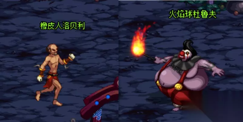 1.精英怪打法教学 总共两只精英怪,橡皮人洛贝利和火焰球杜鲁夫 (1)机制讲解:橡皮人洛贝利,远程攻击,一段伤害,蓄力远程攻击,多段伤害,空中攻击一段伤害。火焰球杜鲁夫,火属性吐息,蓄力突进。 (2)打法讲解:洛贝利的所有技能攻击范围都在X轴上而且不大,只能侧面近身就能轻松击杀。杜鲁夫的突进蓄力动作会跳到空中,而且撞在地图边缘时会让自己眩晕,可以趁这个技能一波带走。 2.boss打法教学