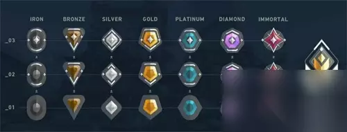1、段位排行:黑铁、黄铜、白银、黄金、铂金、钻石、大师、王者 黑铁(含黑铁1、黑铁2、黑铁3三个小段位) 青铜(含青铜1、青铜2、青铜3三个小段位) 白银(含白银1、白银2、白银3三个小段位) 黄金(含黄金1、黄金2、黄金3三个小段位) 铂金(含铂金1、铂金2、铂金3三个小段位) 钻石(含钻石1、钻石2、钻石3三个小段位) 超凡(含超凡1、超凡2、超凡3三个小段位) 神话(含神话1、神话2、神话3三个小段位) 无畏战魂(最高段位,无小段位划分)