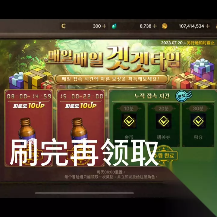 早上七点至下午一点五十九分可以领取十个疲劳值,下午两点至晚上二十二点可以领取十个疲劳值,总共可以领取二十个疲劳值。先领取十个疲劳值,等这十个疲劳值刷完后再领取剩下的十个疲劳值。这样一来,二十个疲劳值可以打三把游戏,如果分开领取可以打四把游戏。 可以获得宠物经验、宠物礼盒和每周成就完成礼盒等奖励。 可以获得魔力结晶强化剂调整箱等奖励。 完成角色成就任务可以增加四维属性和抗魔值。
