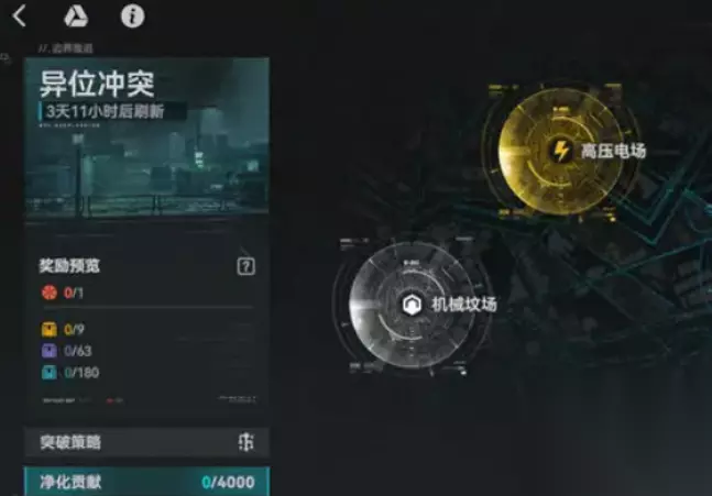 每次周期都会开放三个不同属性的地图,每个地图内都藏有品质各异的补给箱。补给箱的品质越高,打开之后你能获得的奖励自然也越丰厚。而且,异位冲突不仅仅是打怪和收资源这么简单,通过探索,你还可以收集到净化贡献值,这些贡献值会在你完成指定任务后,解锁额外的奖励。如果你有足够强的战力,甚至可以挑战地图中的敌方头目,击败它们后,你将有机会获得最高品质的补给箱和更多珍贵的材料。