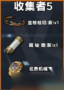 收集者-5 金枝桂冠 (新赛季道具)(非绑定) x1 藏秘筒 (新赛季道具)(非绑定) x1 名贵机械表(非绑定) x1