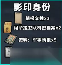 影印身份 情报文件 x3 阿萨拉卫队机密档案 x2 资料:军事情报 x5 脑机relink医疗报告 x1