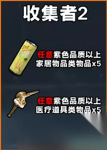 收集者-2 上交5个品质≥紫色,且非绑定的家具物品类收集品(非绑定) x5 上交5个品质≥紫色,且非绑定的医疗道具类收集品(非绑定) x5