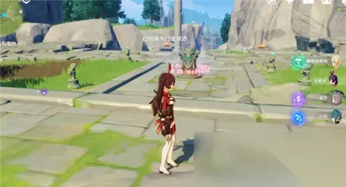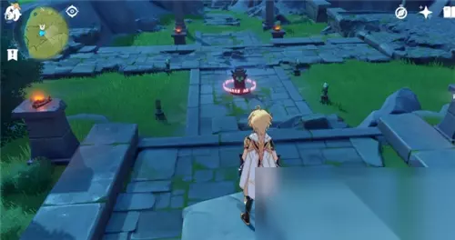 最后一个小精灵在附近的石头堆里,我们按住【鼠标中键】打开元素视野,看一圈周围寻找【白色高亮的石头】,并且将其打碎这个小精灵就会出来了。具体的位置如下图所示。