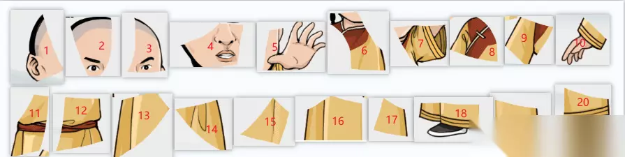 2、然后开始拼身子,8、9、10、11、12所对应的模块就是身子。 3、右脚的话我们需要点击一下,让它换一下方向,就是18现在的样子。