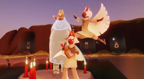 夏至已过,日昼渐短,为了能与光之子们共沐晨光,双平台的下一位旅行先祖,将在本周四早上6:00抵达天空王国! 他将为大家带来 1.灵动可爱的红狐狸面具 2.热情欢脱的蹦跳动作 3.以及乐声清脆的小铃铛 未曾与这位先祖见面的旅人们 记得在本周四早上6:00至下周一中午12:00 与他换取喜爱的赠礼哦~ 狐狸先祖先祖兑换表: