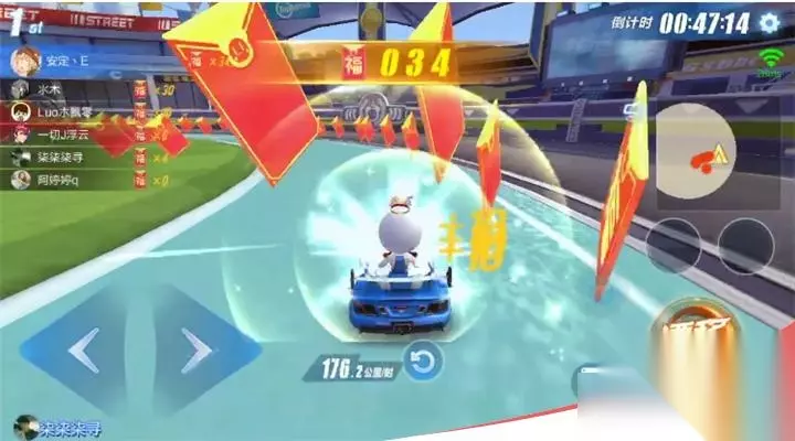 3、道具的合理获得 有没有车友一开始跟我一样——一心扑红包,对道具视而不见。但是事实上,这样的做法其实特别得不偿失。游戏后半段时间,基本上不剩多少红包了,视野开阔的情况下,尽量混杂在人群中,减小被导弹瞄准概率;跟普通模式类似,酷比道具会攻击红包数量较多的前一位玩家,这时获得防御道具的重要性就凸显出来了;被道具击中而扣掉的分数便很难再补回来。所以千万不要对道具视而不见,合理获取道具也是获胜的窍门。