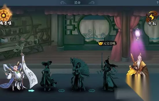 猎命 进入《神仙道2》猎命功能,可以看到五个不同的猎命师,从左到右排序依次是周一仙、小仙女、左慈、张道陵、姜子牙。同时这个排序也是猎命师能力排序,决定了可以猎得的命格品质,比如只有猎命师姜子牙才有可能猎到金色命格。 点击猎命师即可进行猎命,有几率召唤到更强的猎命师猎得更好的命格。玩家遇到丧绝命格时系统会自动卖出转化为铜钱。