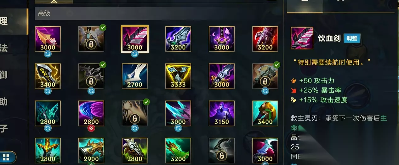 1. 饮血剑:攻守合一的终极蜕变 新版饮血剑的基础属性新增了15%攻速,让你起手更流畅!但真正的蜕变在于被动机制的彻底重塑: 告别"半血增益":血量高于50%增加攻击力的效果已成历史。 迎来"绝境战神":当生命值跌至35%以下时,震撼的"救主灵刃"被动瞬间触发! 双重守护神威:"救主灵刃"不仅提供一个强大的护盾为你抵挡致命伤害,更在接下来的5秒内大幅提升你的双抗(护甲与魔法抗性)! 融合进化:这本质上就是将旧版饮血剑的生命偷取与盾弓的核心保命能力完美融合,同时强度显著提升!代价则是曾经的盾弓将彻底告别峡谷。
