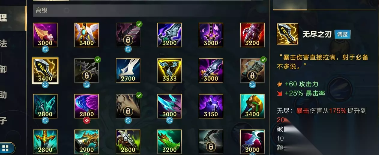 2. 无尽之刃:暴击伤害的突破极限 作为暴击流的核心大件,无尽之刃新增了颠覆性的"破限"被动: 暴击率不再是终点:当你从装备中获取的总暴击率超过100%时,溢出的部分将不再是无效属性! 超额暴伤转化:每1%溢出的装备暴击率,都将为你额外提供0.6%的暴击伤害! 核心意义:这意味着只要有无尽之刃在手,你完全可以、甚至鼓励出齐5件暴击装!溢出的暴击率统统转化为宝贵的暴击伤害。 重要限制:此效果仅计算装备提供的暴击率!亚索、永恩的被动双倍暴击率加成,以及蛮王的被动怒气暴击率,均无法转化为额外的暴击伤害。