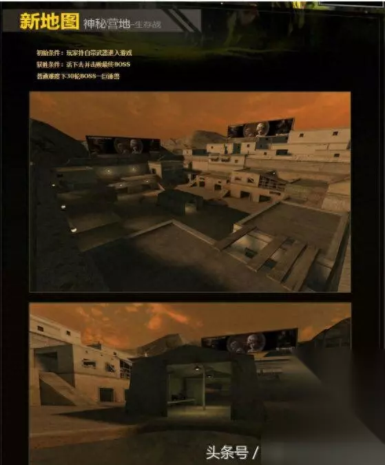 首先当然要回顾一下每张地图的更新版本以及时间辣 2011年1月20日,全民挑战版本更新,挑战模式从此上线,首发地图有2张:神秘营地,绝命之谷