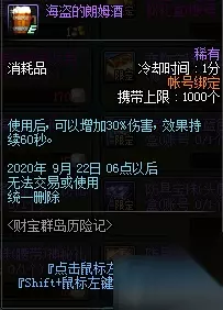 使用后,可以增加30%伤害,效果持续60秒。 获取方式: 可在<财宝群岛历险记>中获得。 在乔安·费雷诺的商店中用1个[被遗忘的银币]可兑换获得。 以上就是233乐园为大家整理的关于DNF海盗的朗姆酒属性一览的全部内容,希望能对大家有所帮助,祝大家游戏愉快! DNF2020活动 欲望之塔