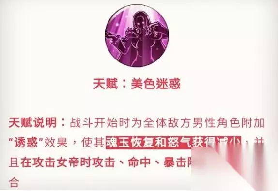 终结:颓靡甜风 魂玉消耗:4+1 技能说明:对敌方直线造成自身攻击力一定百分比的技能伤害,同时额外附加固定伤害; 效果:极致诱惑,为敌方男性目标附加“诱惑”状态,效果持续2回合