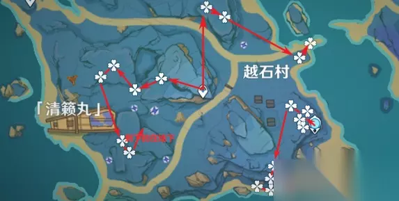 11、天云峠,路线较长,建议带个跑图角色,收益还是不错的,总共会有30个可以收集,每个地方的鸣草数量都是比较多的,大家看自己的需求采集即可。