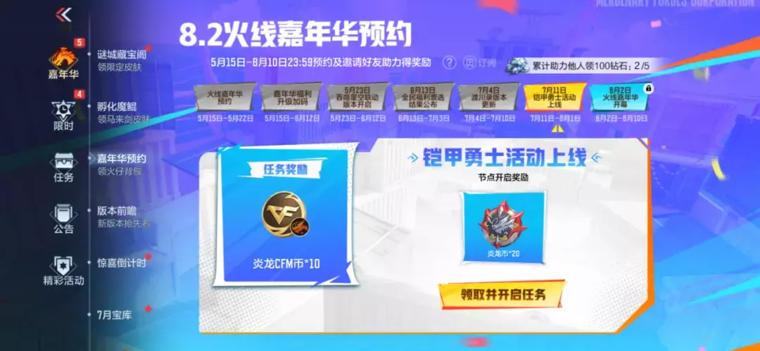 本期时间节点可直接领取20个炎龙币,邀请3位好友助力还可以领取10个炎龙CFM币,助你拿下炎龙铠甲套装。